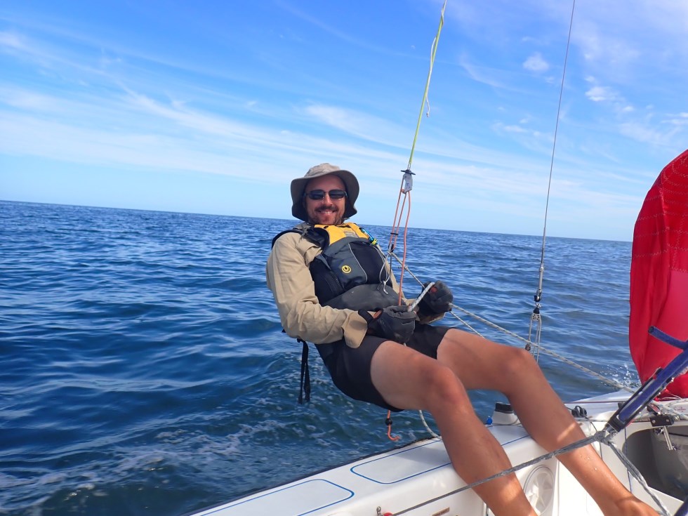 See new to fireballer Lyndon Zimmerman sailed between Henley Beach and up to Adelaide Sailing Club |